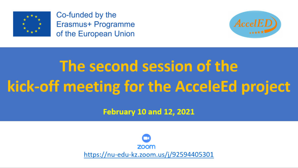 Приглашаем вас принять участие во второй сессии установочной встречи международного проекта AccelEd – Совершенствованию сестринского образования на уровне магистратуры и PhD докторантуры в Казахстане.