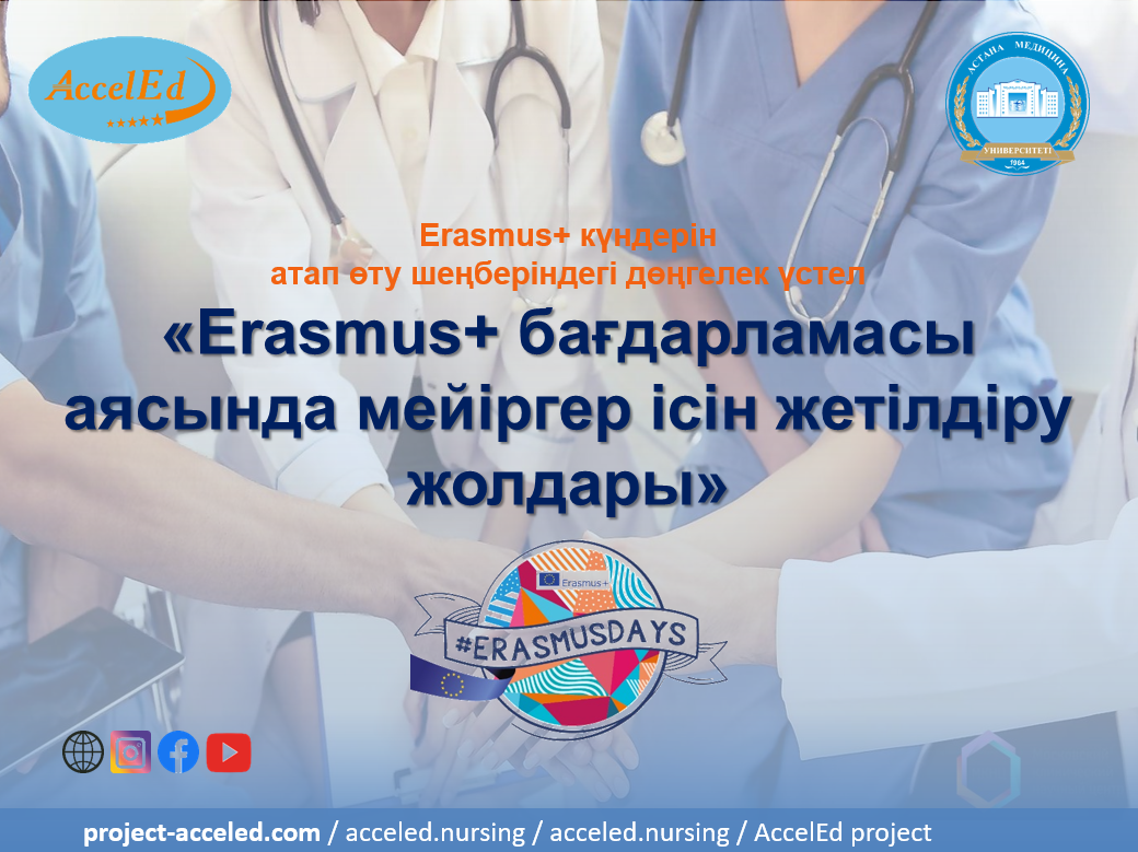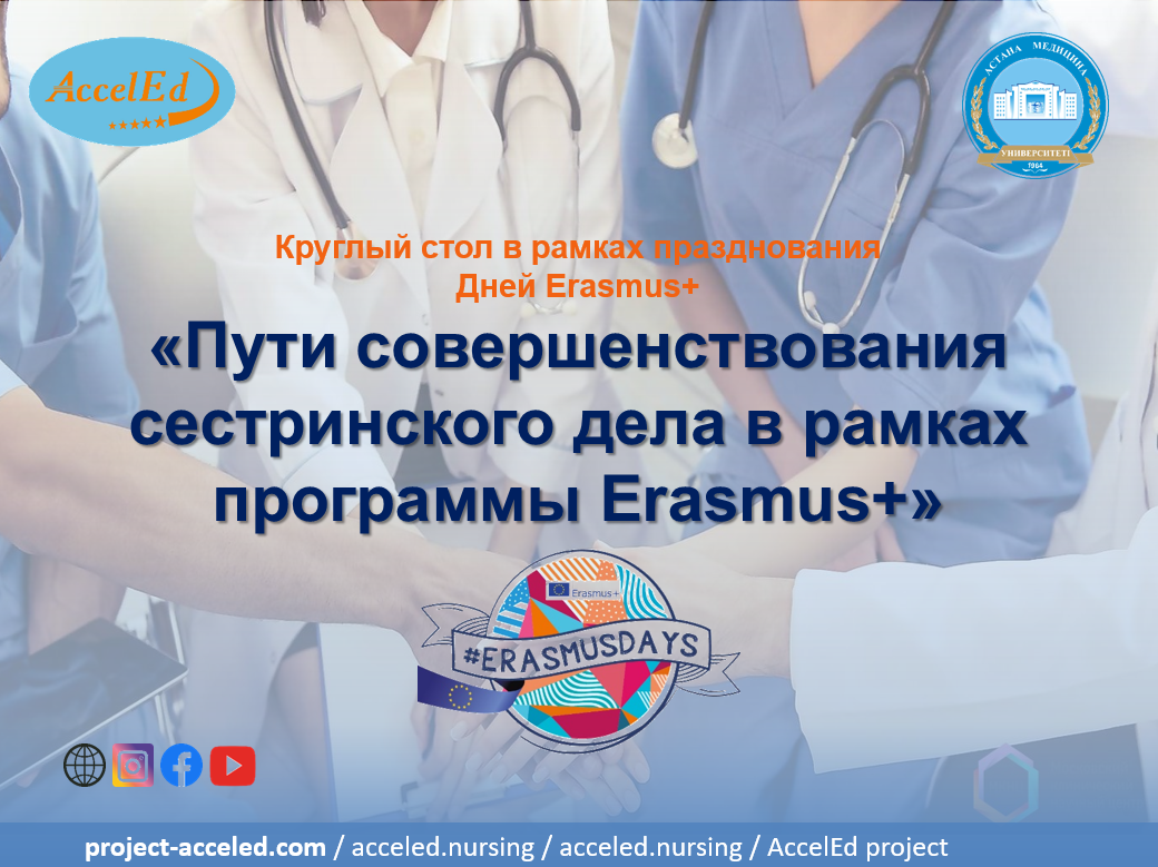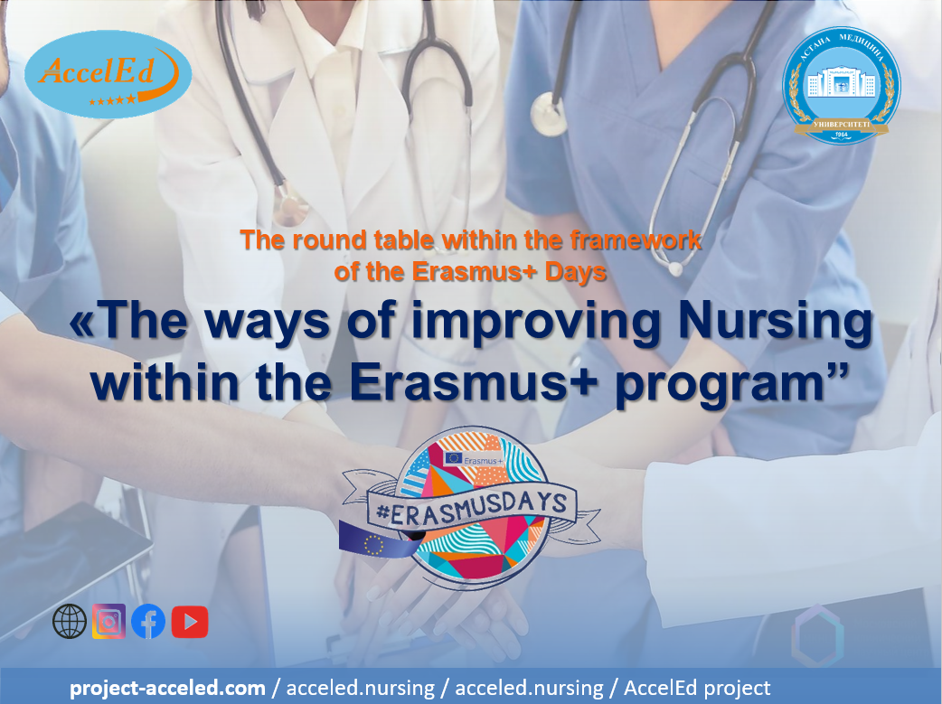 Цель круглого стола – обсудить современные возможности развития сестринского дела в стране и презентовать проект «AccelEd», направленный на совершенствование сестринского образования на уровне магистратуры и докторантуры в системе высшего образования в Казахстане.