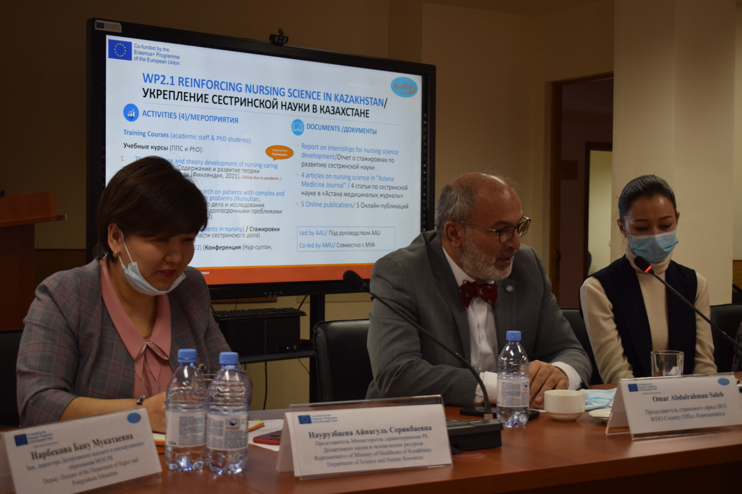 С учетом возрастающей роли сестринского дела в современной медицине, казахстанские университеты обратили внимание на необходимость роста значимости и понимания деятельности медицинских сестер. В этой связи c начала 2021 года казахстанские медвузы совместно с ведущими европейскими университетами запустили проект по развитию сестринского дела на уровне магистратуры и докторантуры в системе высшего образование в Казахстане – AccelEd (Accelerating Master and PhD Level Nursing Education Development in the Higher Education System in Kazakhstan) при поддержки европейской программы Erasmus+. В первый год реализации проекта партнеры успели провести мастер-классы и обучающие семинары, направленные на повышение навыков и знаний обучающихся и преподавателей по сестринскому делу. Целый год мероприятия проводились в формате онлайн, однако в связи с недавним смягчением карантинных мер, участники AccelEd решили провести живые встречи в виде круглого стола по обсуждению хода реализации проекта в Нур-Султане и мастер-класса в Караганде по современной методологии развития сестринских услуг.