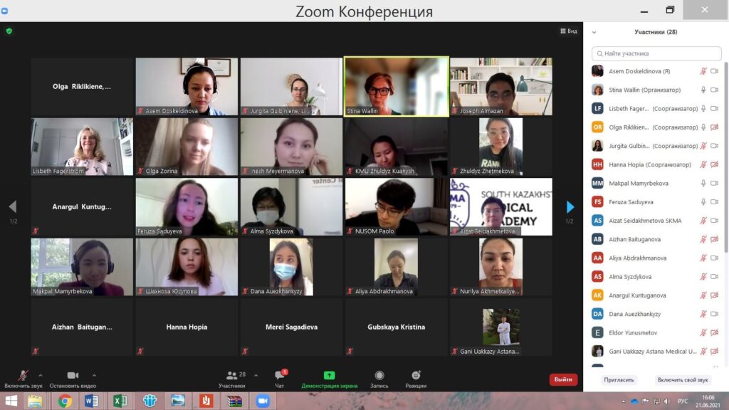 Завершающим мероприятием первого полугодия был обучающий курс «Содержание и развитие теории сестринского дела», организованный в сотрудничестве Университета Або Академи и Медицинского университета Астана. В нем приняли участие 26 PhD докторантов и магистрантов, а также преподаватели университетов в области сестринской науки из семи медицинских вузов Казахстана.